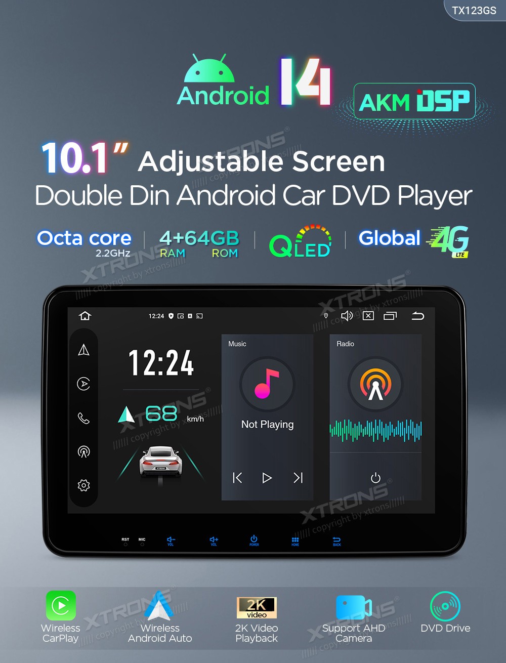 XTRONS TX123GS 10.1" 2DIN Multimeedia Android 14.0 Octa-Core Tarkvara: Android 14.010.1" HD puuteekraan 1280*720pxProtsessor Octa-Core 2.2GHz 64bitMuutmälu DDR4 4GB, EMMC 5.1 64GB sisemäluGüroskoobi andurGPS NavigatsioonCAR AutoPlay (Bluetooth) AndroidAuto (Bluetooth, USB)HDMI väljund - (vajalik XTR ...Lisaseadmed