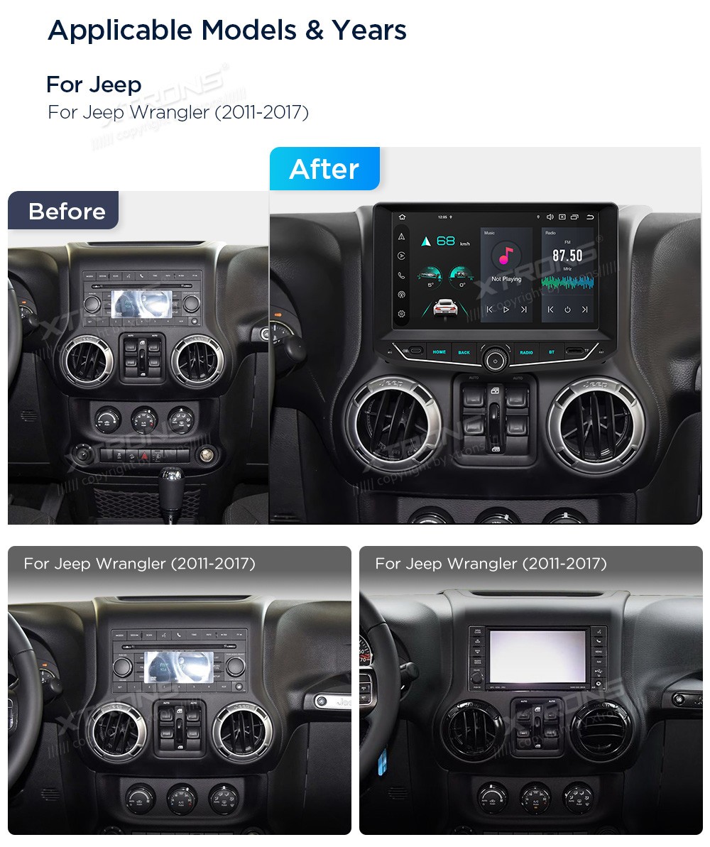 XTRONS PX94WLJGS 9.0" Jeep Wrangler Multimeedia Android 14.0 Octa-Core 4G Jeep Wrangler (2011-2017)Tarkvara: Android 14.09.0" HD puuteekraan 1280*720px, G+GProtsessor Octa-Core 2.2GHz 64bitMuutmälu DDR4 4GB, eMMC 5.1 64GB sisemäluGPS NavigatsioonCAR AutoPlay (Bluetooth) AndroidAuto (Bluetooth j ...Lisaseadmed