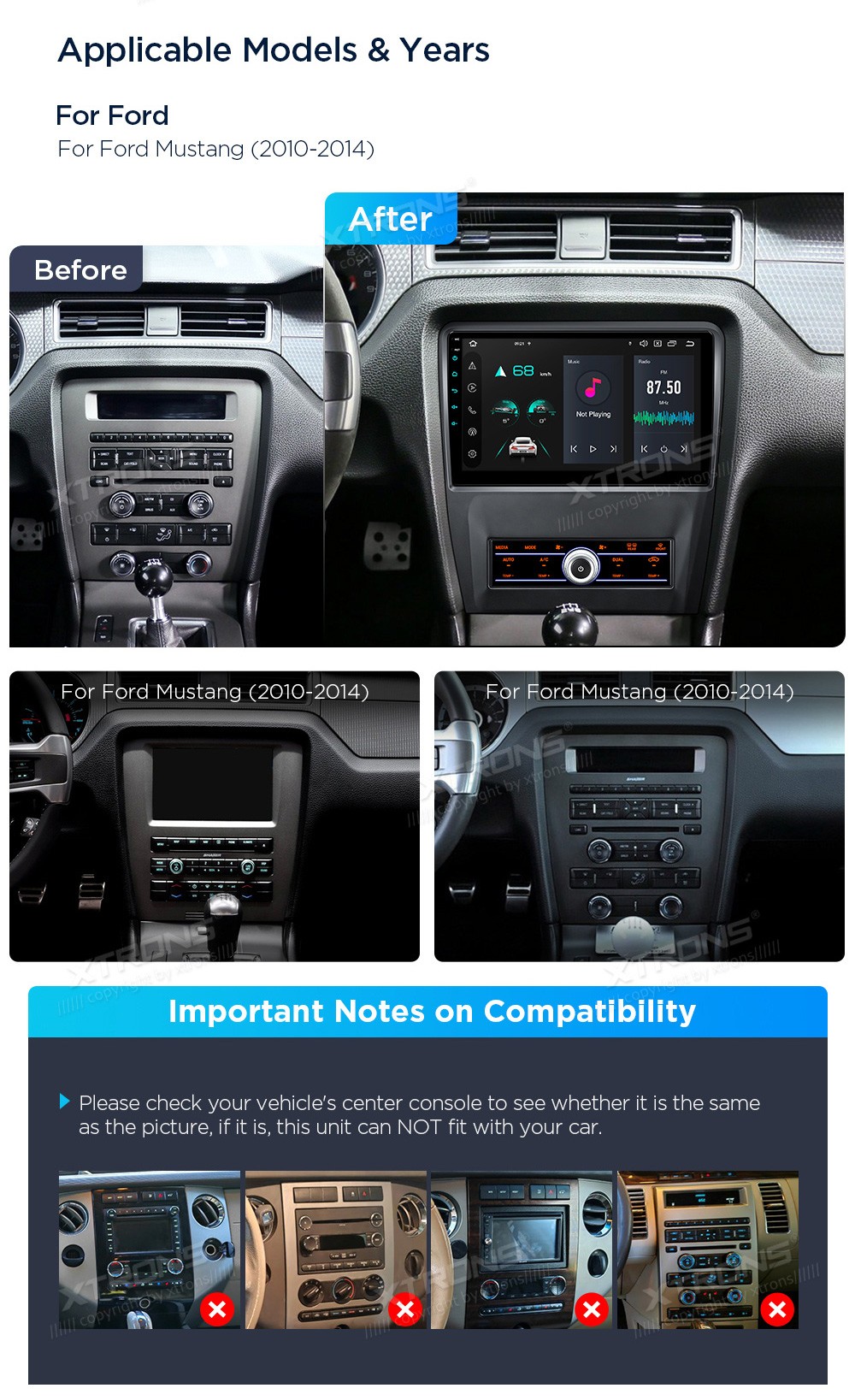 XTRONS PXP14MTFGS 10.1" FORD Mustang Multimeedia Android 14.0 Octa-Core 4G FORD Mustang (2010-2014)Tarkvara: Android 14.010.1" HD puuteekraan 1280*720px, G+GProtsessor Octa-Core 2.2GHz 64bitMuutmälu DDR4 4GB, eMMC 5.1 64GB sisemäluGPS NavigatsioonCAR AutoPlay (Bluetooth) AndroidAuto (Bluetooth ...Lisaseadmed