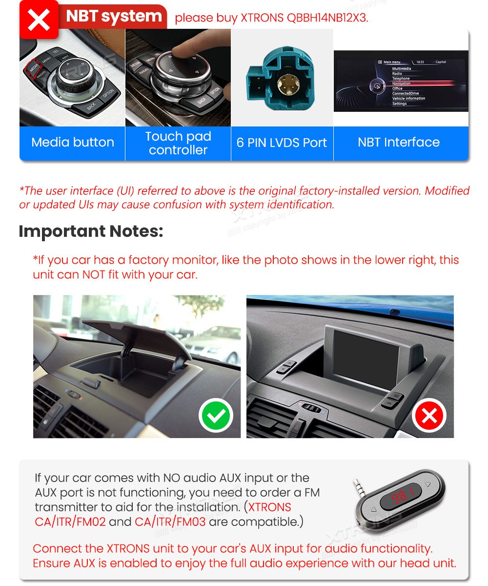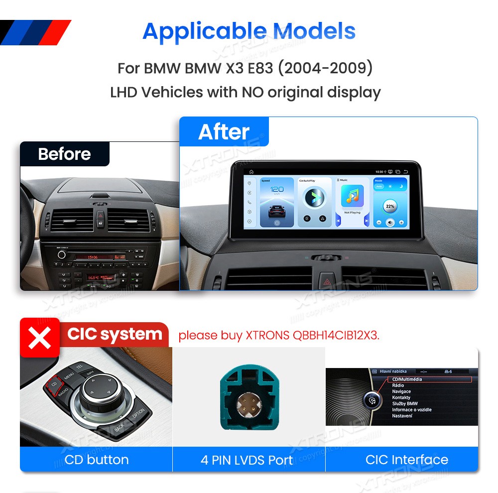 XTRONS QBBH14X3UNL 10.25" BMW X3 E83 Multimeedia Android Octa-Core 4G BMW X3 E83 (2004-2009) (Kui autol puudub originaalne ekraan.)Tarkvara: Android10.25" HD puuteekraan 1920*720px, IPS HD G+GProtsessor Qualcomm Octa-Core 64bit 2.0GHzMuutmälu DDR4 8GB, UFS2.2 128GB sisemäluGPS NavigatsioonCAR A ...Lisaseadmed
