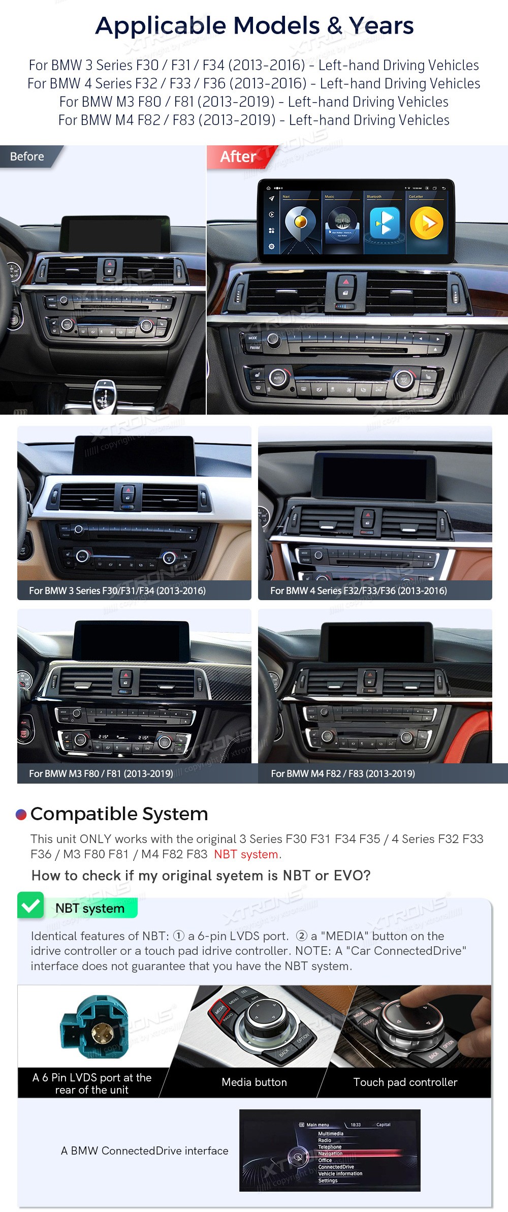 XTRONS QLB22NBTHL 12.3" BMW 3, 4 Seeria M3, M4 NBT Multimeedia Android 13.0 Octa-Core 4GBMW 3 Series F30, F31, F34 (2013-2016)BMW 4 Series F32, F33, F36 (2013-2016)BMW M3 F80, F81 (2013-2019)BMW M4 F82, F83 (2013-2019)(Sobib, kui sõidukil on NBT süsteem.)Tarkvara: Android 14.012.3" HD puuteekraan 19 ...Lisaseadmed