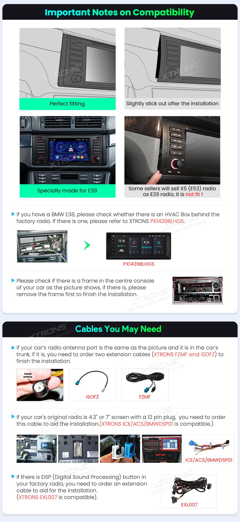 XTRONS EXL007 6 meetriline ISO kaabel BMWBMW E38 E39 E53 E4617 ja 40 pin pistikHarmon Kardon helisüsteemiga...