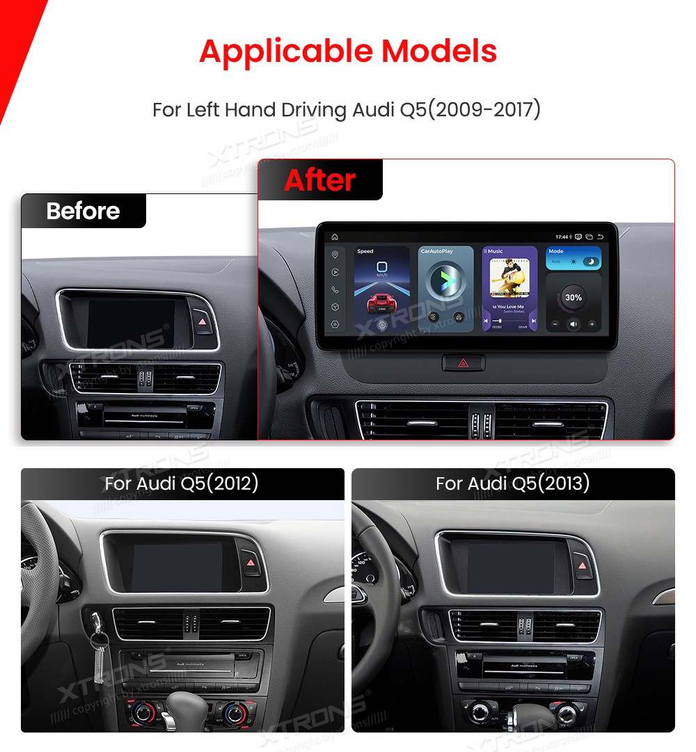 XTRONS QBA24Q5HL 12.3" AUDI Q5 Multimeedia Android 14 Octa-Core 4G Audi High-Spec Q5 (2009-2017)Tarkvara: Android 1412.3" HD puuteekraan 2400*900px, IPS HD G+G QLEDProtsessor Qualcomm Kryo 260 Octa-Core 64bit 2.0GHzMuutmälu DDR4 4GB, UFS2.2 64GB sisemäluGPS NavigatsioonCAR AutoPl ...Lisaseadmed