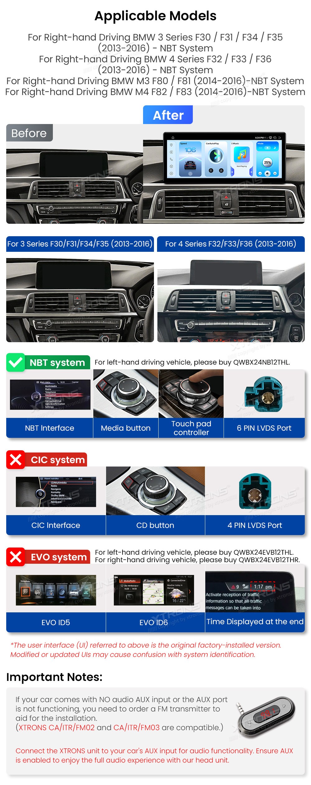 XTRONS QWBX24NB12THR 12.3" BMW 3, 4 Seeria M3, M4 NBT Multimeedia Android 14 Octa-Core 4G BMW 3 Series F30, F31, F34 (2013-2016)BMW 4 Series F32, F33, F36 (2013-2016)BMW M3 F80, F81 (2014-2016)BMW M4 F82, F83 (2014-2016)(Sobib, kui sõidukil on NBT süsteem.)Tarkvara: Android 1412.3" HD puuteekra ...Lisaseadmed
