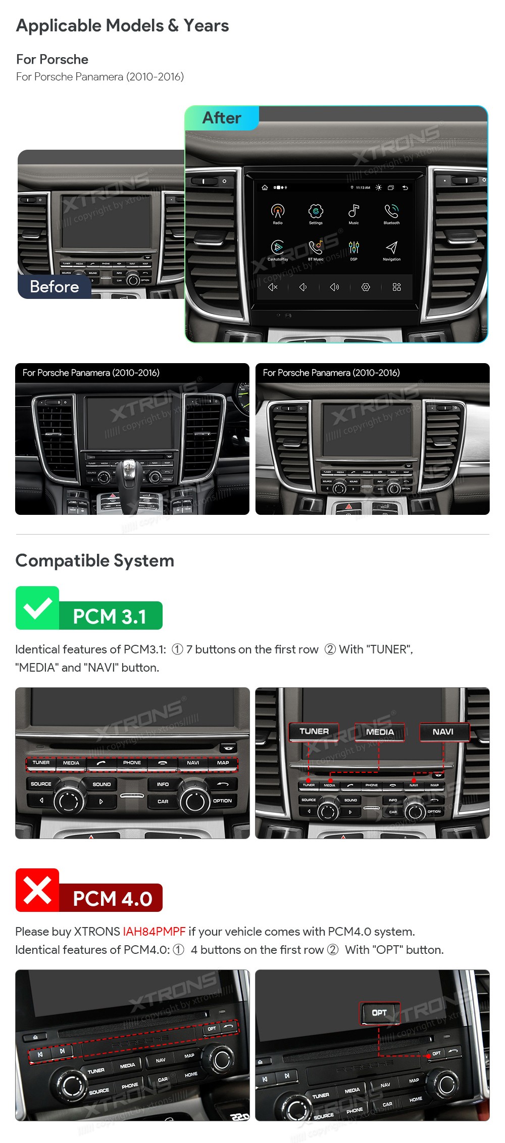 XTRONS IAH84PMPT 8.4" Porsche Panamera PCM 3.1 Multimeedia Android 14.0 Octa-Core 4G Porsche Panamera (2010-2016)  PCM 3.1 süsteemiga.Tarkvara: Android 14.08.4" HD puuteekraan 1024*768px, IPSProtsessor MediaTek Cortex A75*2+Cortex A55*6 Octa-Core 32/64bitMuutmälu 4GB DDR4, 128GB SSD sisemäluGPS Navi ...