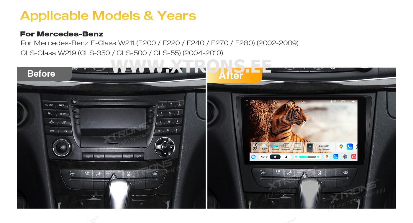 XTRONS IMHP94M211 9.0" Mercedes-Benz W211, W219 Multimeedia Android Octa-Core 4G Mercedes-Benz E-Class W211 (E200 / E220 / E240 / E270 / E280) (2002-2008)CLS Class W219 (CLS-350 / CLS-500 / CLS-55) (2005-2006)9-tolline UNISOC 7865 8+128 GB kahe Bluetooth QLED ekraaniga globaalne 4G AKM DSP Android a ...Lisaseadmed